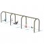 This architecturally styled 8' Arch Swing Frame is more than a simple swing set. The 5" arches and 5" top bars are constructed with high-quality steel to ensure safety during fun for up to 6 children. The powder coating with your choice of available colors for the posts and seats with galvanized steel chains is this perfect finishing touch to match your playground.