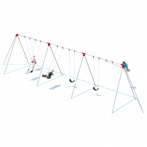 The Tri-Pod Swing Set adds a modern twist to the Bi-Pod style, with three legs on each side instead of two. The legs and top bar are built from 2 3/8” outer diameter galvanized steel tubing. This swing set style is available in 8’ or 10’ heights, with the number of bays available ranging from one to four. Each bay contains 2 swings. Multiple color options are available for the powder-coated aluminum casting for customization, too.